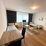 Eine Küchenzeile mit einem Kühlschrank und einem Kochfeld steht für Selbstversorgung zur Verfügung. Die Bushaltestelle Oberhauser Allee liegt in der Nähe von diesem Apartment.