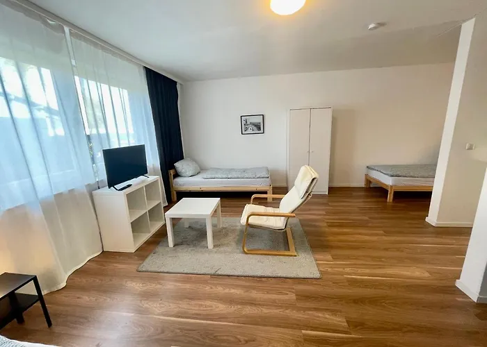 Diese 1-Zimmer-Apartments ist in einer Entfernung von ungefähr 15 Autominuten vom Innenhafen Duisburg sowie in einer Entfernung von ungefähr 10 Autominuten vom LVR-Industriemuseum Oberhausen gelegen. Das Stadtzentrum ist nur 4 km entfernt. Der Flughafen Düsseldorf liegt 35 km von dem 33 m² großen Duisburg-3-Bett Monteurwohnung/Ferienwohnung entfernt.